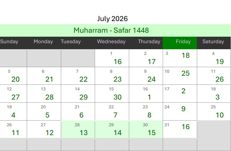 3۔ آئی ٹی او کیلنڈر:
